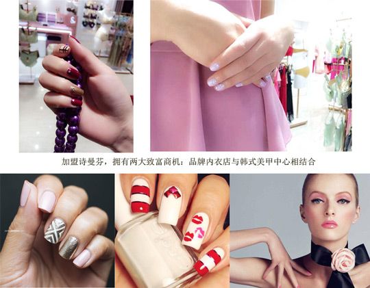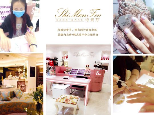 引進韓式美甲項目,加盟詩曼芬,擁有兩大致富商機:品牌內衣店與韓式美甲中心相結合,新項目的注入讓我們共聚財富。